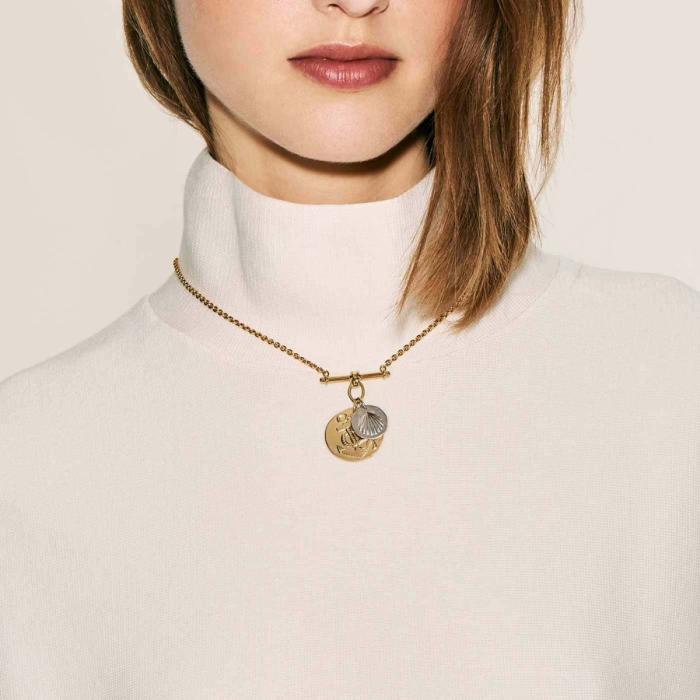 옐로우 골드 공중그네 실버 목걸이 - 42cm